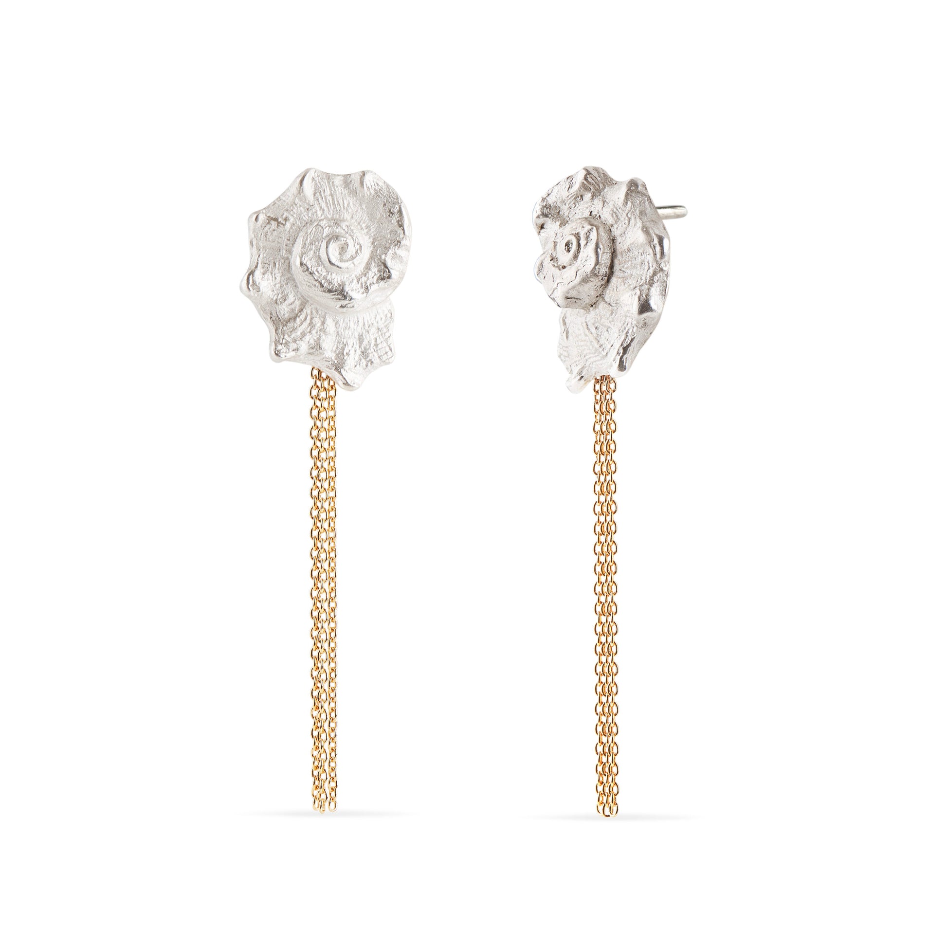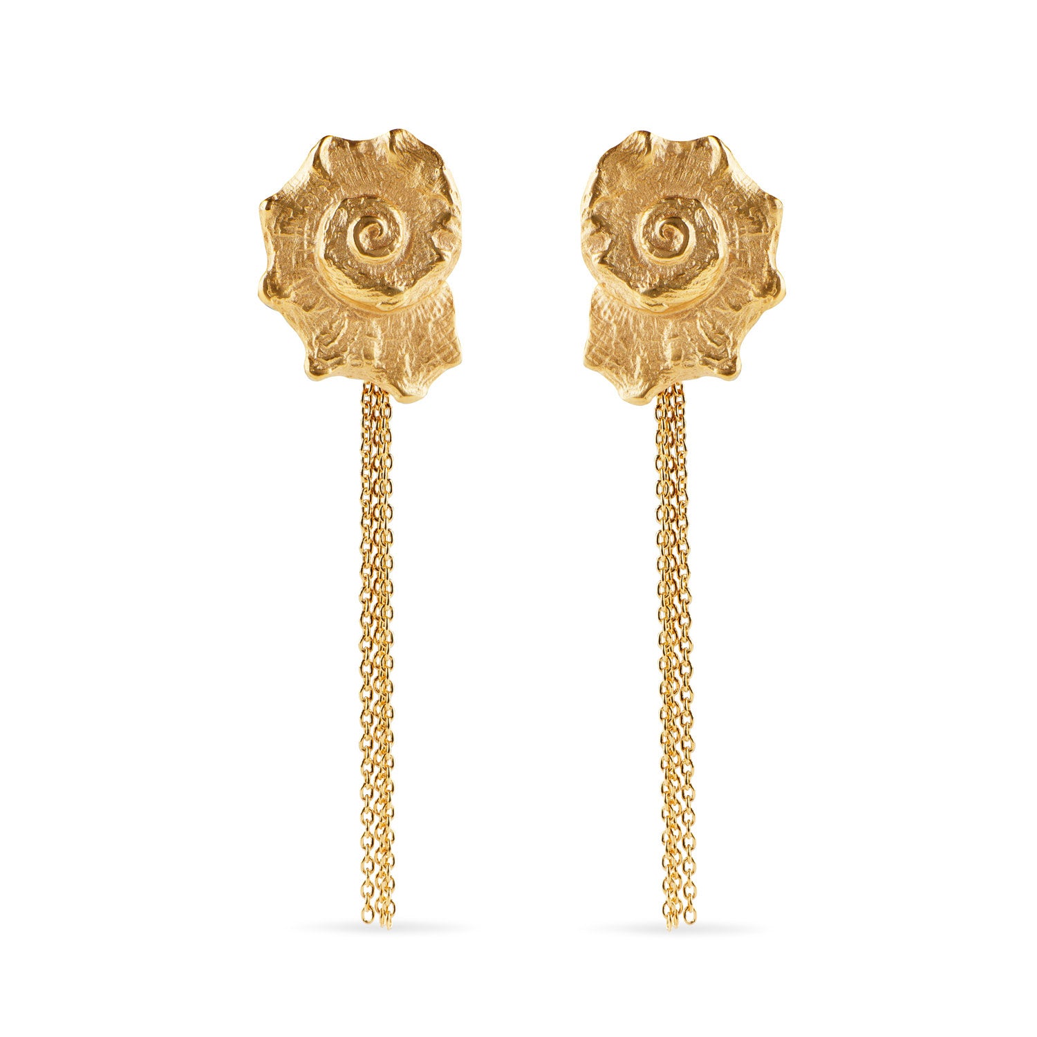 Statement earrings in the shape of a seashell.