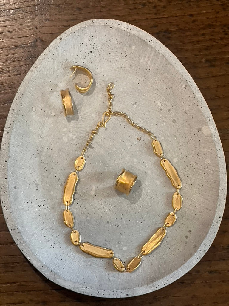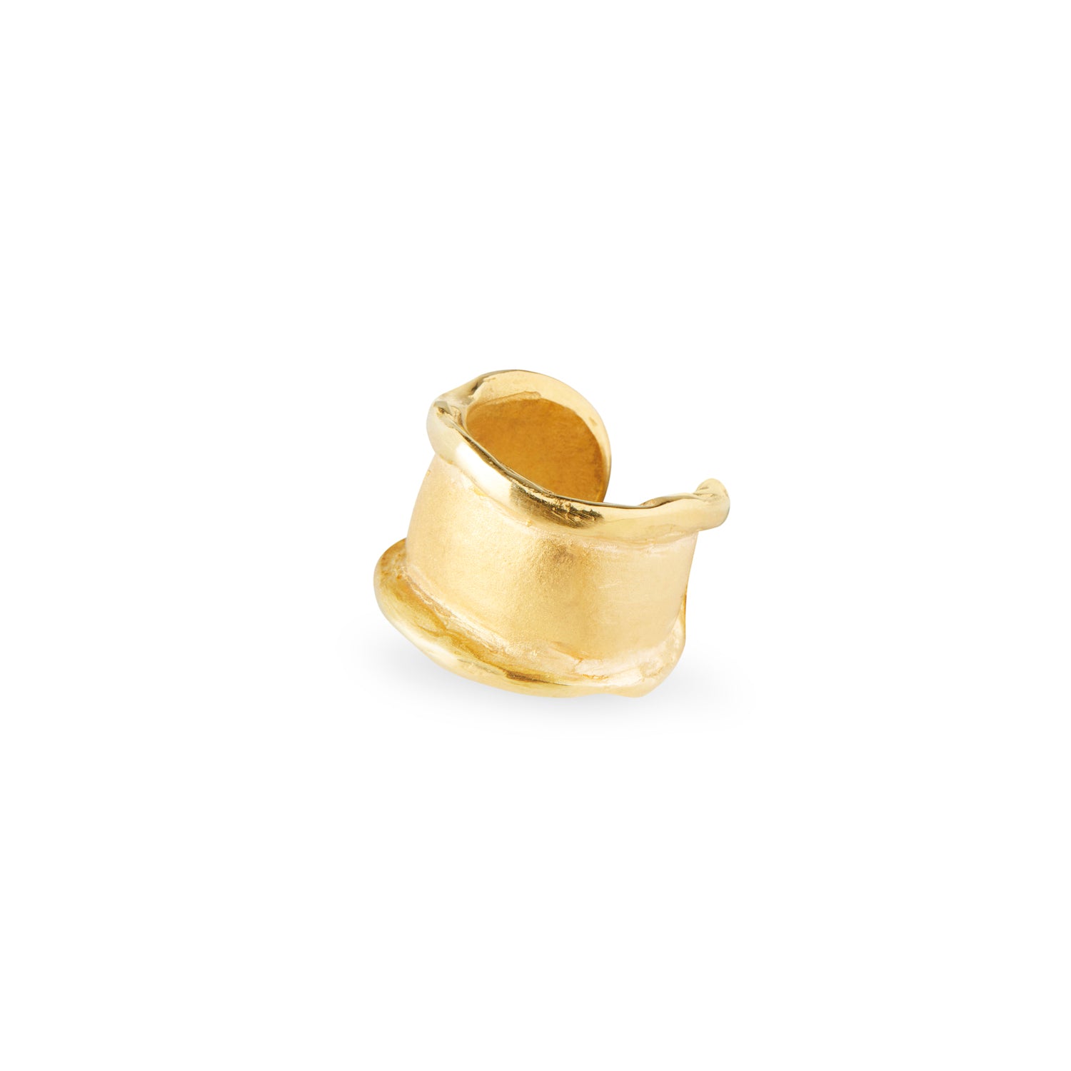 Anel alto de perfil liso e contornos irregulares.