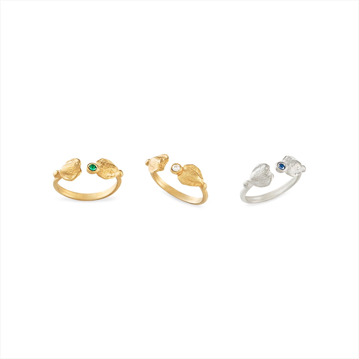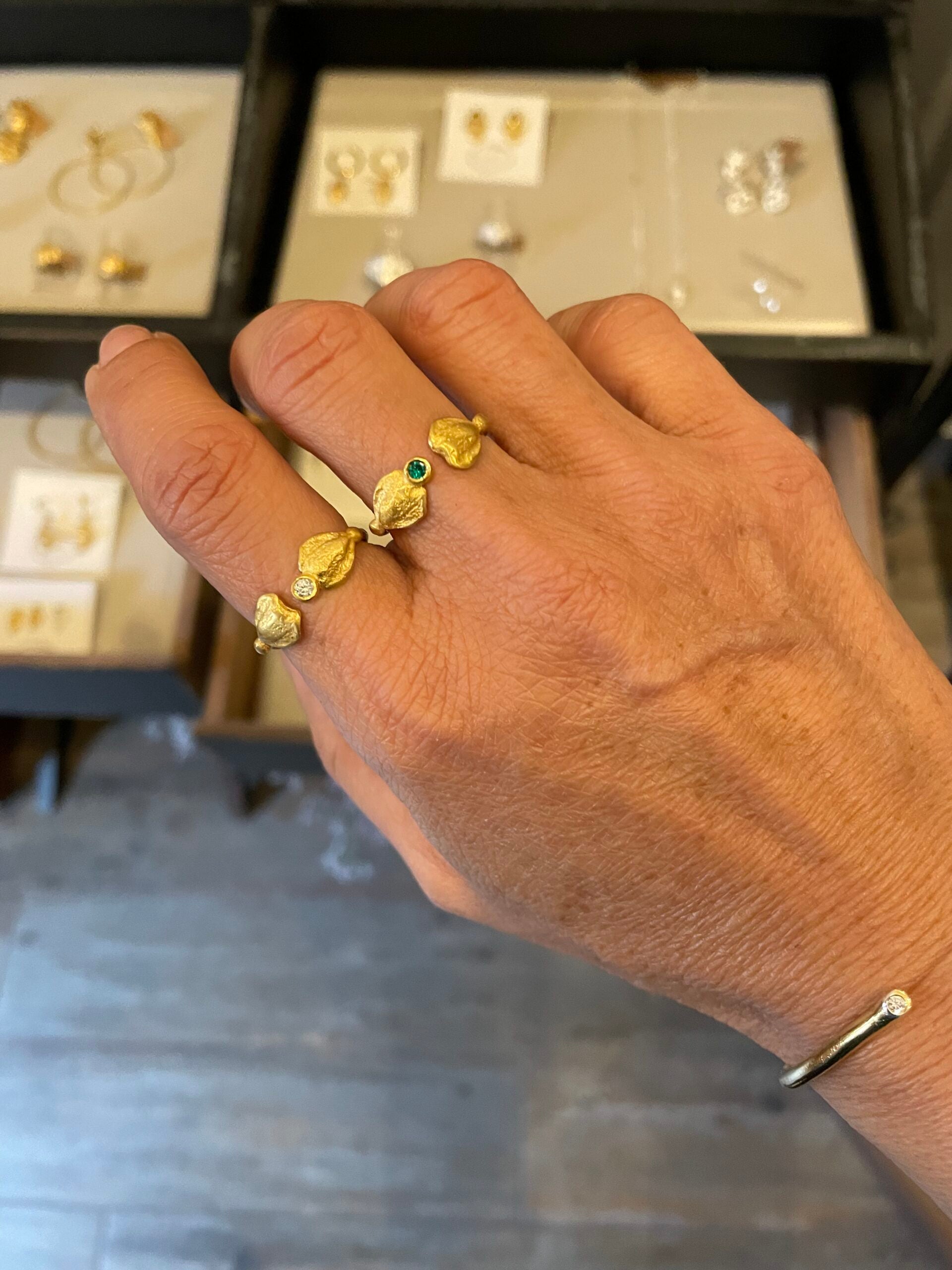 Anel folha com pedra