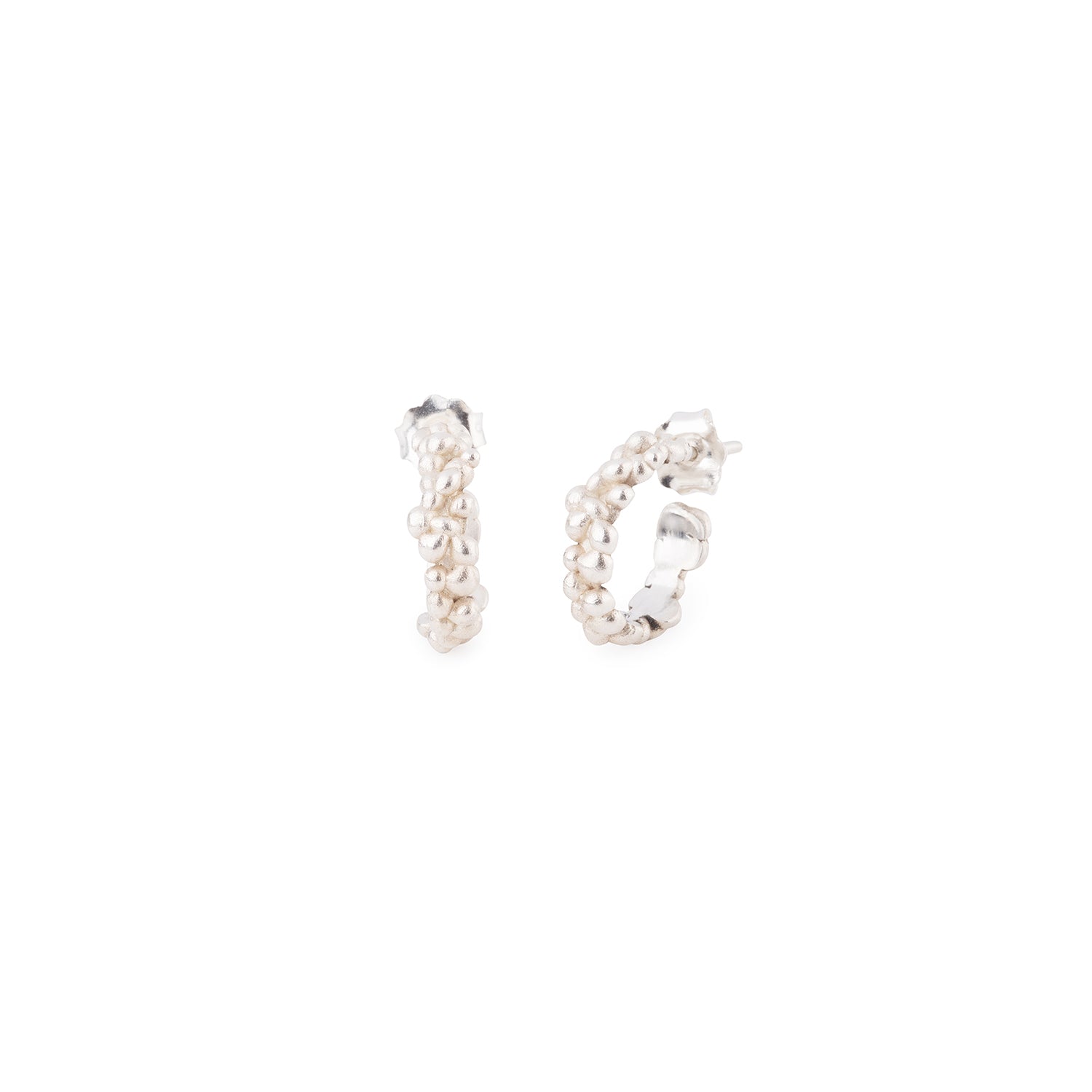 Argolas mini com pequenas pepitas de prata aglomeradas