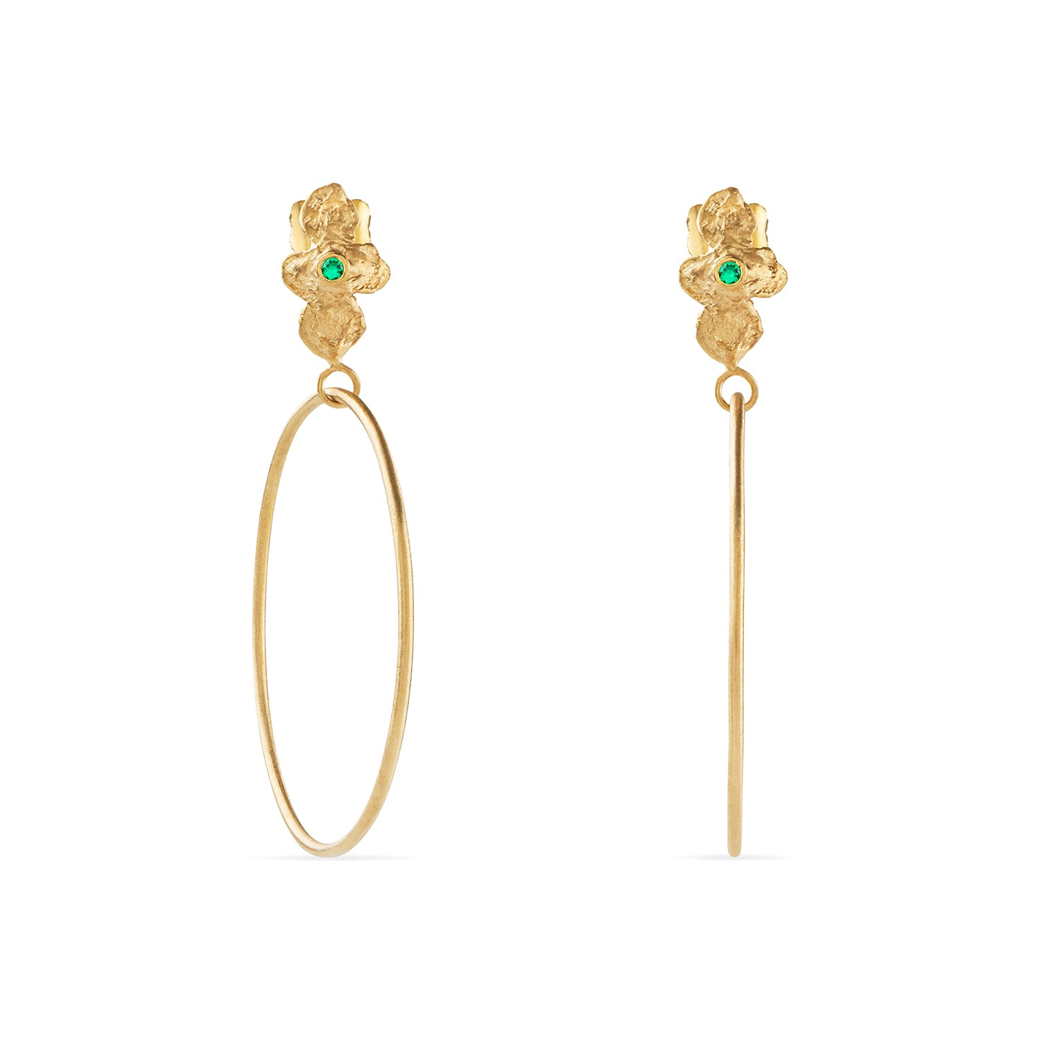 Argolas balançantes com cruz (elemento floral), com uma pedra cravada