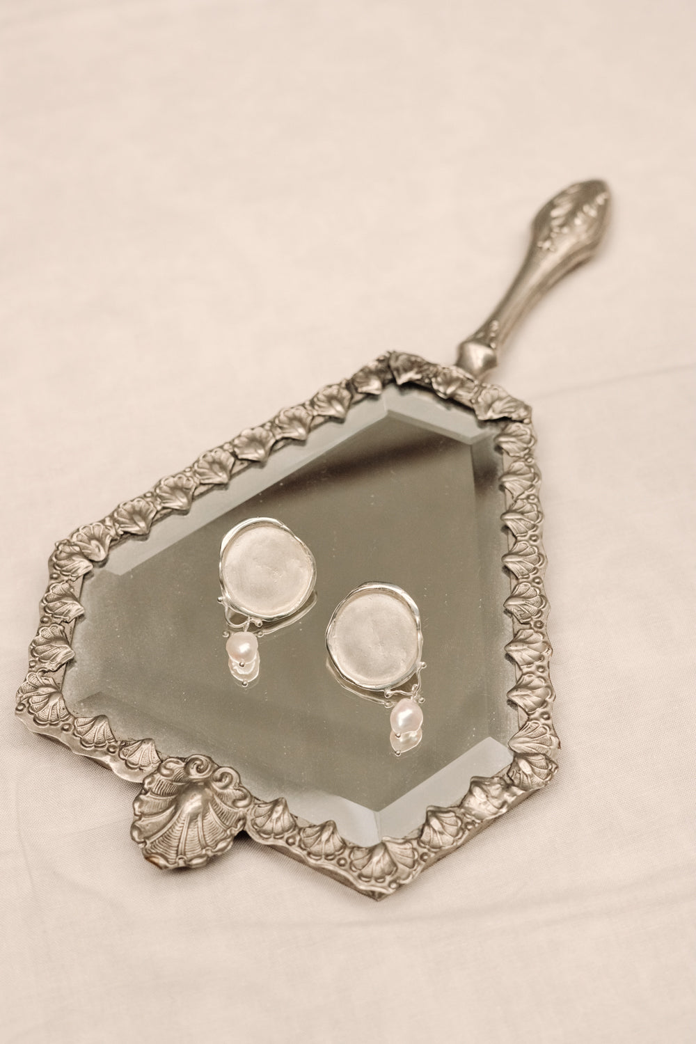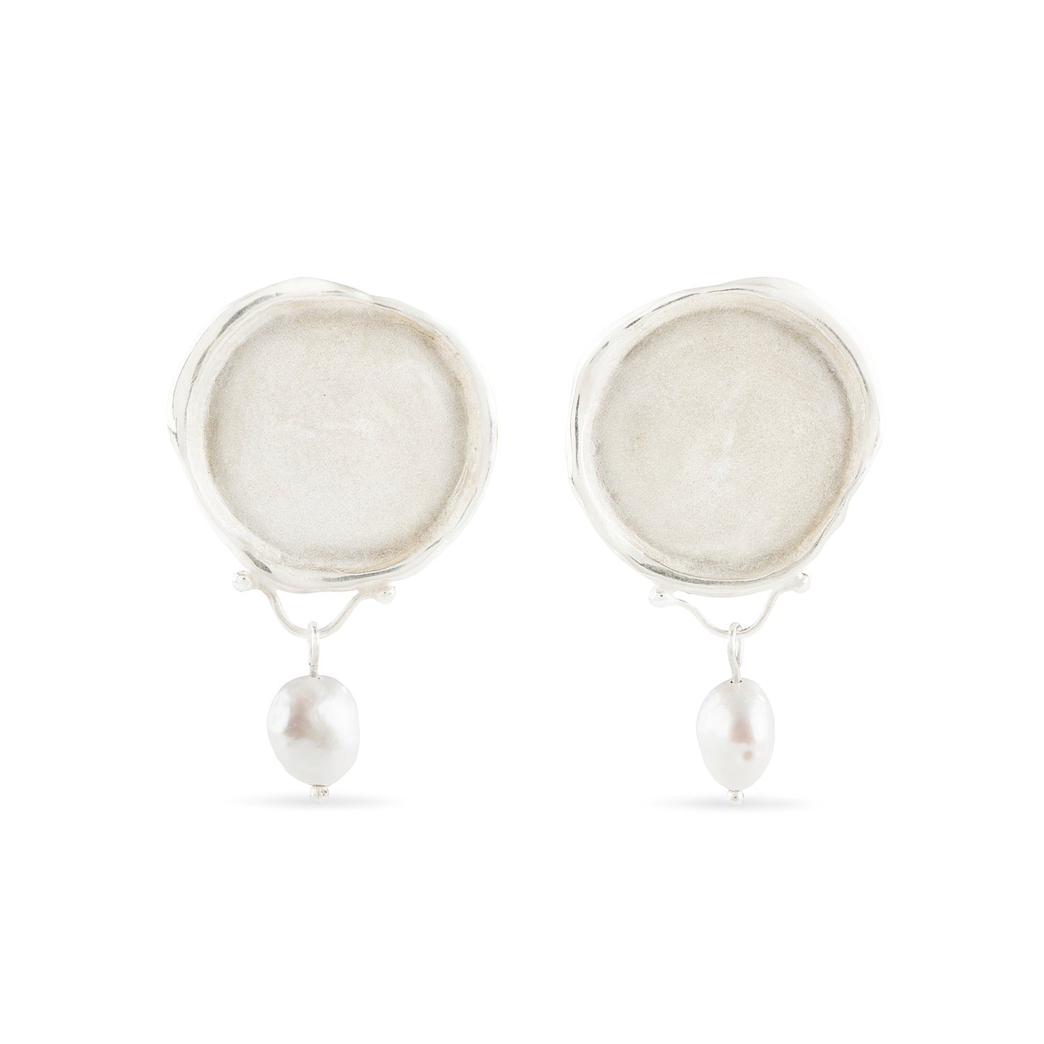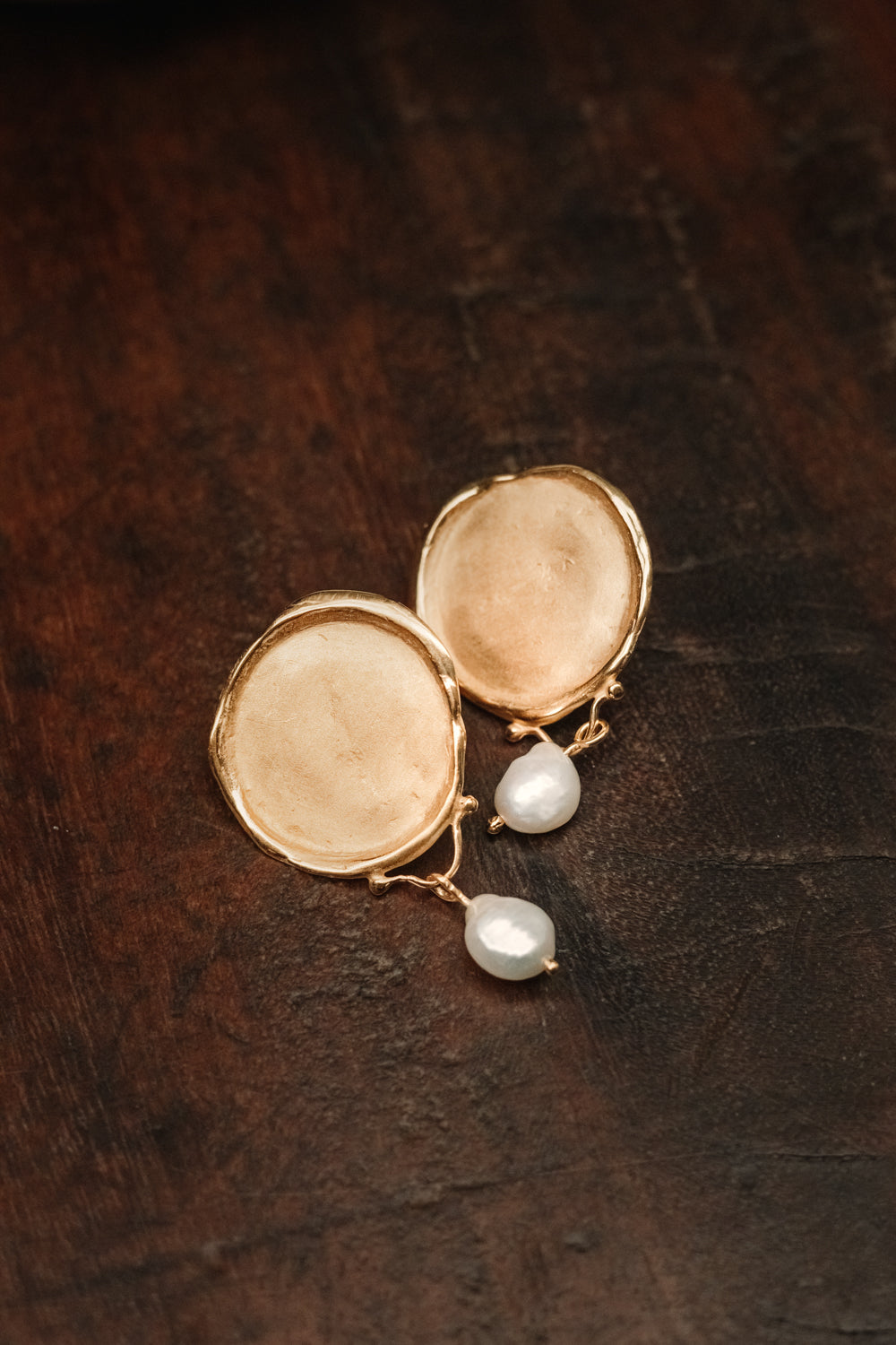 Brincos em forma de selo de lacre com uma pérola barroca de 8mm