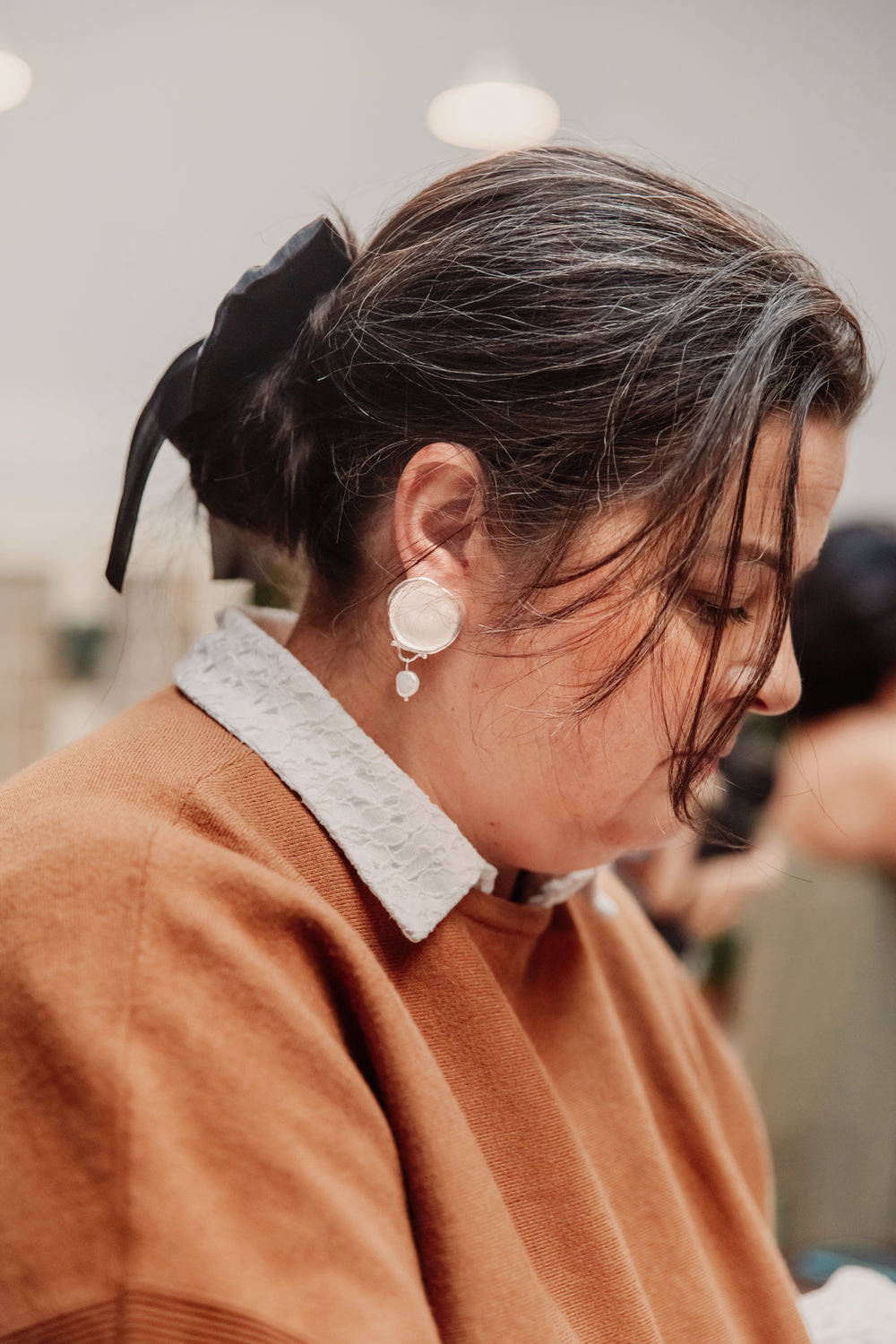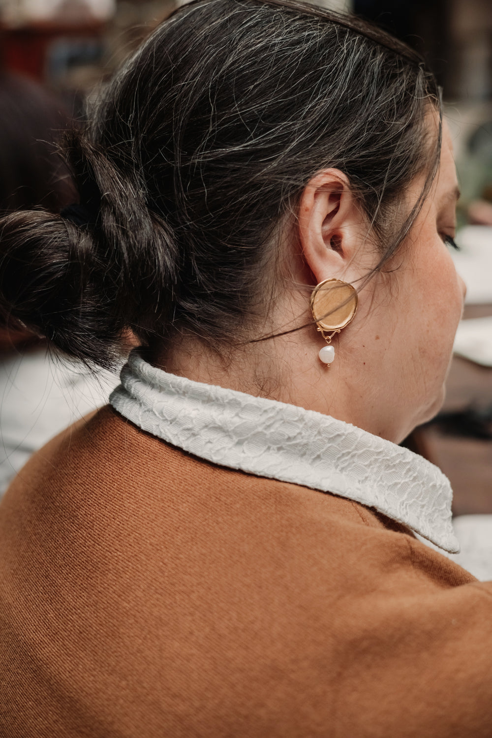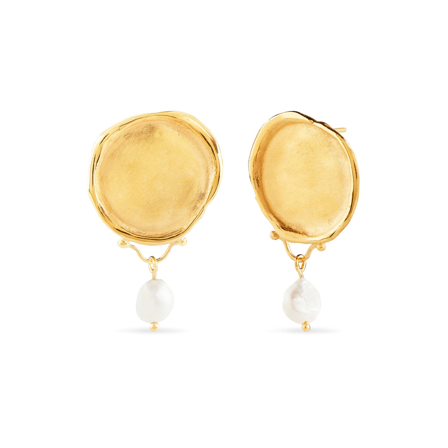 Brincos em forma de selo de lacre com uma pérola barroca de 8mm